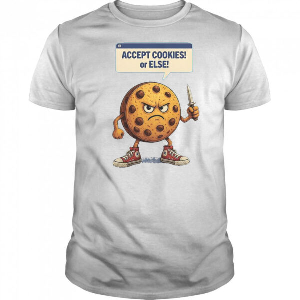 Embrace your love for cookies and make a bold statement with the Accept Cookies Or Else Cookie Knife T-Shirt! This shirt isn’t just about fashion; it’s a conversation starter, a mood lifter, and a playful nod to internet culture. Stand out from the crowd and show off your fun side with this witty design. Not only does this t-shirt make a great addition to your casual wardrobe, but it also sends a clear message in a lighthearted way. Don’t miss the chance to own this hilarious piece that combines style with a touch of rebellion. Get your hands on the Accept Cookies Or Else Cookie Knife T-Shirt today and let your outfit speak volumes about your personality and sense of humor!