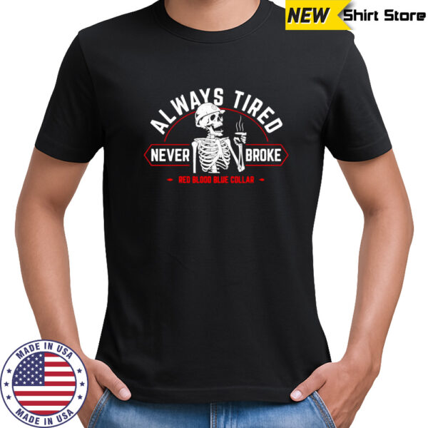 Always tired never broke shirt, hoodie, sweater, longsleeve and ladies t-shirt