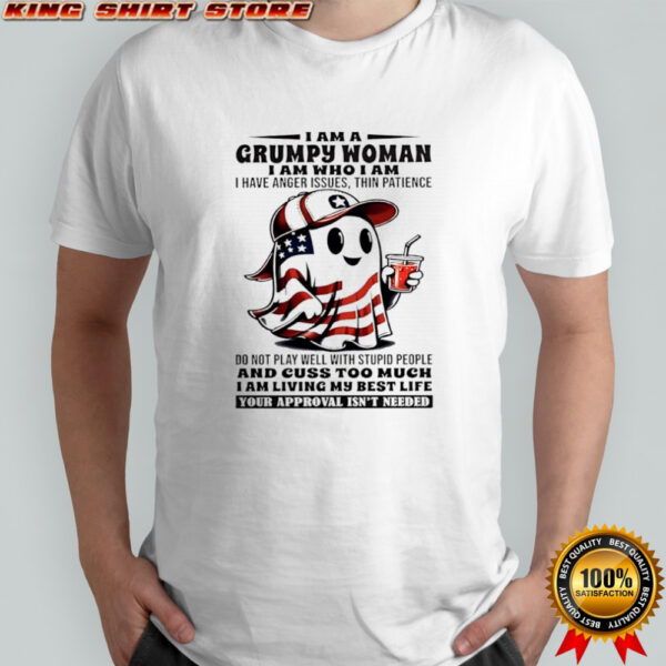 American Ghost i am a grumpy woman i am who i am i have anger issues thin patience shirt