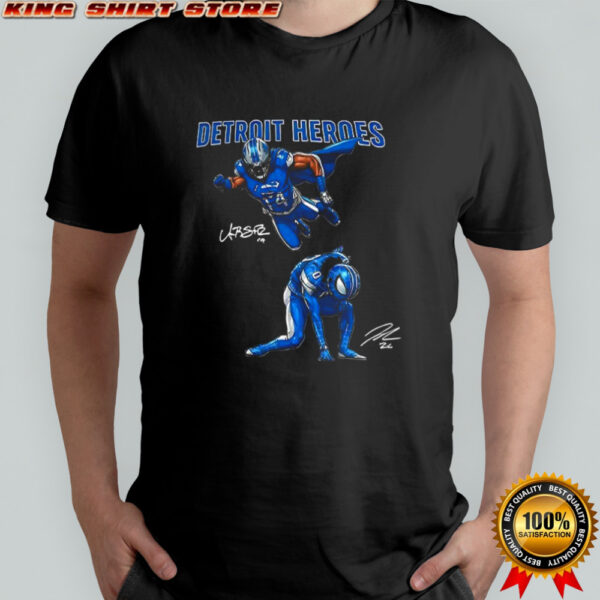 Amon Ra St Brown and Jahmyr Gibbs Detroit Heroes signature shirt, hoodie, sweater, longsleeve and ladies t-shirt