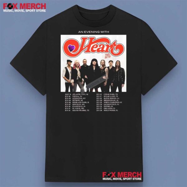 Emblazoned with vibrant colors and intricate details, the **An Evening With Heart Band Tour 2025 Shirt** is not just apparel; it’s a memory etched in fabric. Every brushstroke, every note symbol, tells a story of connection and emotion. As you slip into this shirt, you’re not just putting on clothing; you’re wearing an experience, a piece of history. Let the soft fabric embrace you in comfort as the design sparks conversations and evokes nostalgia. Donning this shirt is not just a fashion choice; it’s a tribute to the music that moves your soul. So, grab your piece of musical history and let the world know that you were part of something extraordinary. **An Evening With Heart Band Tour 2025 Shirt** – wear the magic, relive the night, and be a part of the everlasting melody.
