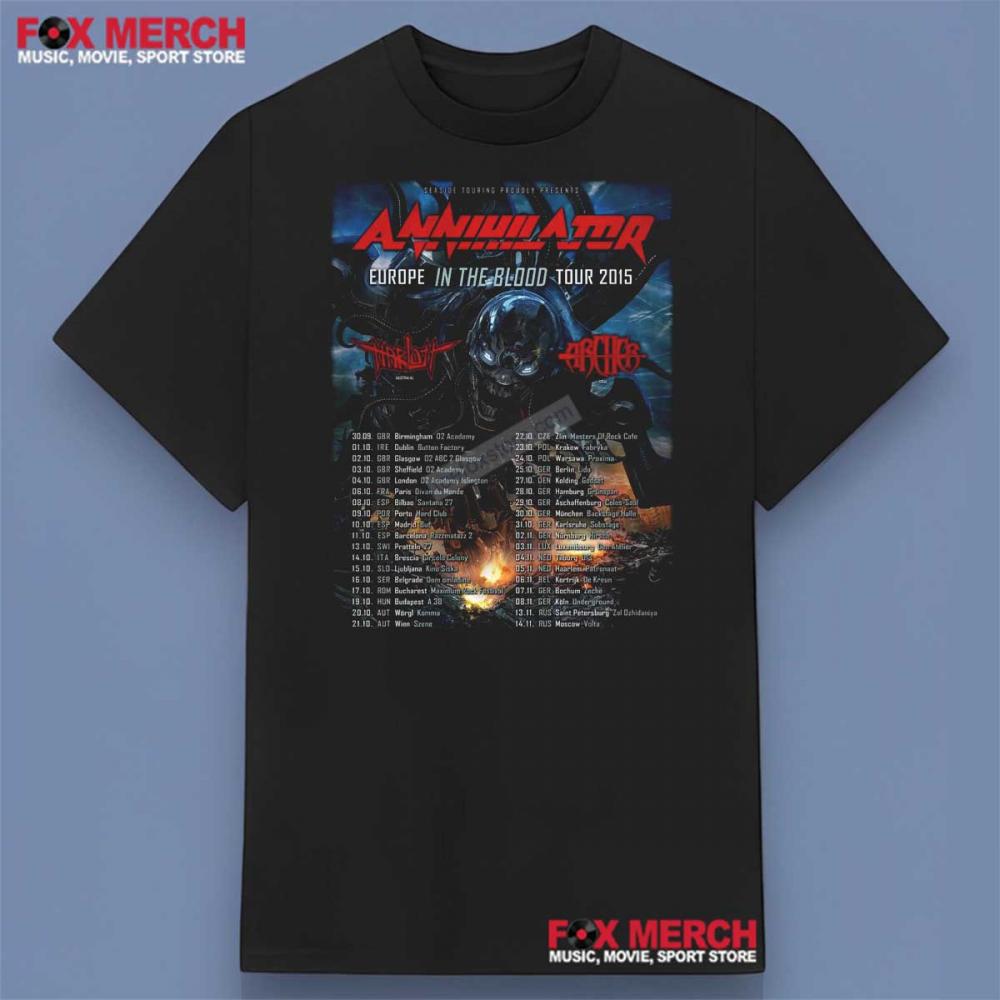 The Annihilator In The Blood Tour 2025 Shirt is not just a piece of clothing; it’s a statement of allegiance to the metal music scene. This exclusive design captures the essence of the legendary 80s thrash metal band’s upcoming tour, blending intricate artwork with a touch of nostalgia. The shirt boasts a striking graphic featuring the band’s iconic logo intertwined with blood splatters and a backdrop of a concert stage, evoking the raw energy and passion of live performances. Whether you’re a die-hard metalhead or simply appreciate edgy, bold fashion, this shirt is a must-have addition to your wardrobe.