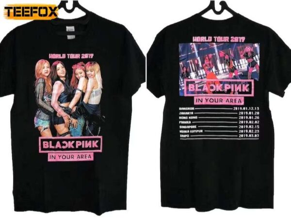 Don’t miss your chance to own a piece of K-pop history! Get your hands on the BlackPink In Your Area World Tour 2019 Short-Sleeve T-Shirt today and make a bold fashion statement wherever you go. Whether you’re a dedicated BlackPink fan or simply appreciate stunning design and top-notch quality, this shirt is a must-have addition to your wardrobe. Hurry and order now to experience the thrill and glamour of the BlackPink world tour every time you wear this iconic tee. Embrace your inner fashionista, show your love for BlackPink, and let your style shine with the BlackPink In Your Area World Tour 2019 Short-Sleeve T-Shirt!