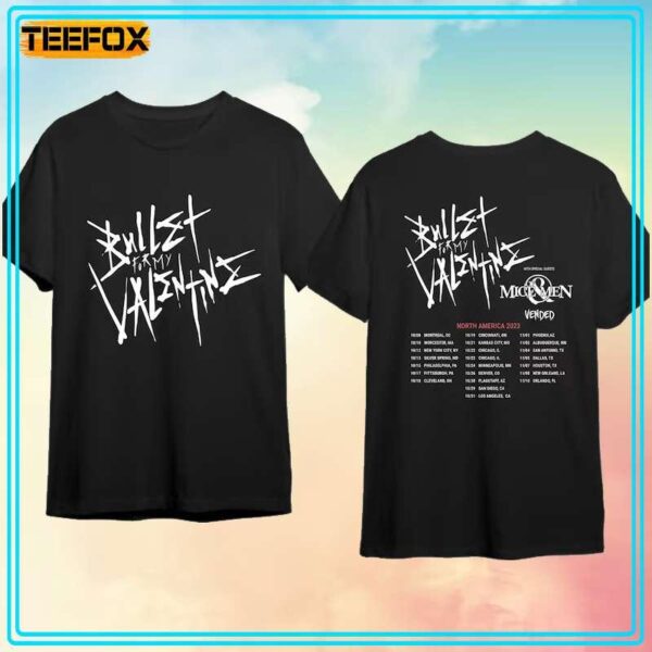 The design of the Bullet For My Valentine Tour 2023 Short-Sleeve T-Shirt is a masterpiece in itself. The bold graphics and intricate details transport you to the heart of a live performance, with the band’s iconic logo emblazoned proudly across the chest. The high-quality fabric ensures comfort as you rock out at the next concert or simply want to infuse your everyday style with a touch of rock ‘n’ roll edge. This shirt is more than just a garment; it’s a symbol of your dedication to the music that moves you, a tangible connection to the heart-pounding excitement of a live show. Don’t miss your chance to own a piece of the Bullet For My Valentine legacy.