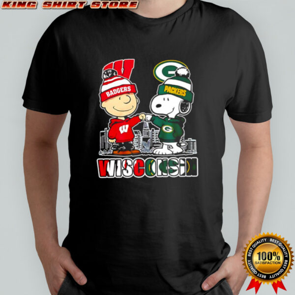 Charlie Brown and Snoopy wearing Wisconsin Badgers and Green Bay Packers logo shirt, hoodie, sweater, longsleeve and ladies t-shirt