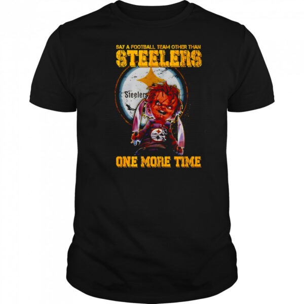 But this shirt is more than just a fashion statement; it’s a symbol of loyalty and passion for true football fans. It embodies the spirit of standing by your team through thick and thin, unapologetically expressing your love for the game. The striking design and vibrant colors are sure to turn heads and spark conversations, making you the ultimate fan in any crowd. So, why settle for ordinary when you can stand out with the Chucky say a football team other than Steelers one more time shirt? Grab yours now and let your team pride shine like never before. Wear it to the next game, a sports bar, or even just around town – be ready to make a statement and show your unwavering support!