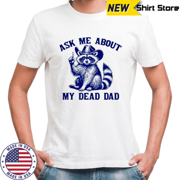 Cowboy Raccoon ask me about my dead dad shirt, hoodie, sweater, longsleeve and ladies t-shirt