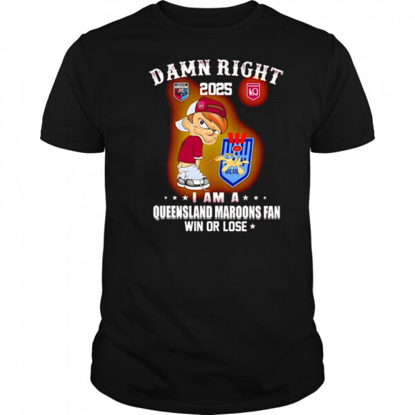 Damn right 2025 I am a Queensland Maroons fan win or lose shirt, hoodie, sweater, longsleeve and ladies t-shirt