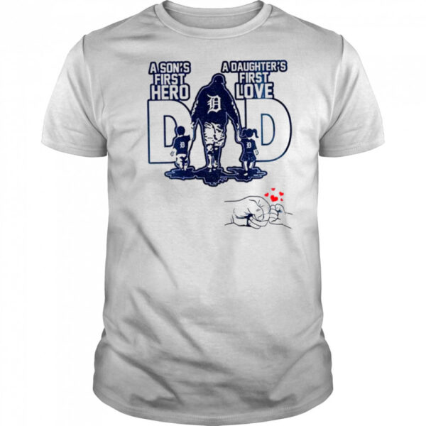 Detroit Tigers Dad A son’s first hero a daughter’s first love Happy Father’s Day 2025 shirt, hoodie, sweater, longsleeve and ladies t-shirt