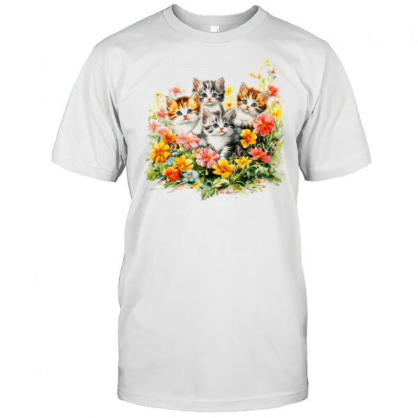 Floral Vintage Aesthetic Painted Kittens Cat Lover Flower shirt