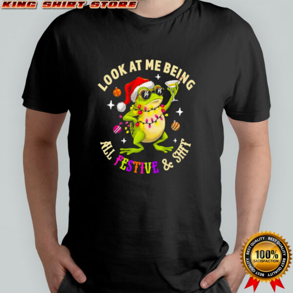 Frog Santa hat Christmas lights look at me being all festive & shit shirt, hoodie, sweater, longsleeve and ladies t-shirt
