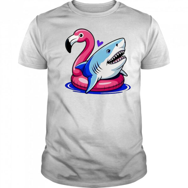 Great White Shark in Pink Flamingo Pool float shirt, hoodie, sweater, longsleeve and ladies t-shirt