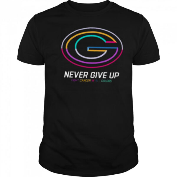 Every stitch in the Green Bay Packers never give up Fight Cancer in all colors Shirt tells a story of courage and strength. The bold design is a reminder that no one fights alone, and together, we can overcome any challenge. Embrace the spirit of never giving up and spread awareness with every step you take. Be a beacon of hope and inspiration in your community by wearing this shirt proudly. Join the fight against cancer and let your voice be heard through the powerful message this shirt carries. Stand with the Green Bay Packers and show the world that together, we can conquer anything. Get your shirt today and be a part of something bigger than yourself.