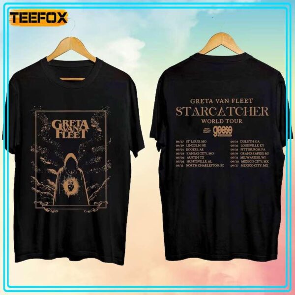 Picture yourself in the midst of a roaring crowd, the electric atmosphere buzzing with anticipation as the legendary Greta Van Fleet takes the stage. Now, imagine commemorating this unforgettable experience with the Greta Van Fleet Starcatcher World Tour 2024 Concert Dates T-Shirt. This exclusive piece is not just a garment; it’s a gateway to reliving the magic of their iconic world tour. The design encapsulates the essence of their music, blending intricate artwork with the thrill of live performances. Whether you’re a die-hard fan or a newcomer to their sensational sound, this t-shirt is your ticket to sartorial stardom.
