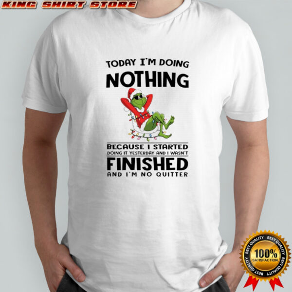 Step into the holiday spirit with our exclusive Grinch Christmas today i’m doing nothing because i started doing it yesterday and i wasn’t finished shirt! Embrace the whimsical charm of everyone’s favorite Christmas grouch with this delightful tee. Crafted from premium, soft cotton, this shirt ensures both comfort and style. The vibrant colors and intricate design capture the essence of the beloved Grinch character, making it a must-have for any fan of the classic tale. Let your inner Grinch shine bright this holiday season as you spread cheer in a uniquely playful way.
