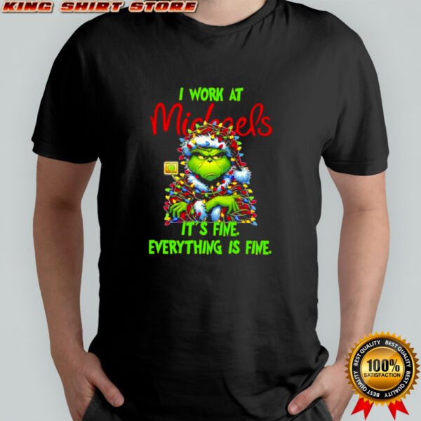 Grinch i work at Michaels logo it’s fine everything is fine shirt, hoodie, sweater, longsleeve and ladies t-shirt