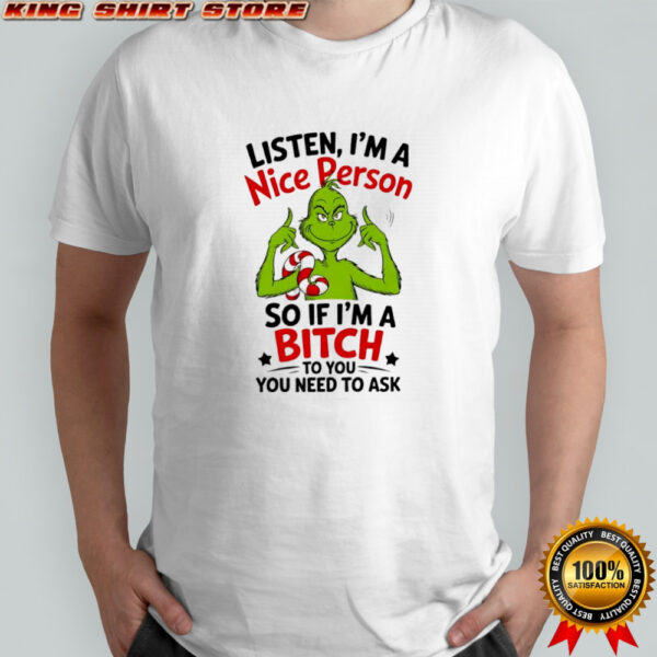 Grinch listen i’m a nice person so if i’m a bitch to you you need to ask shirt, hoodie, sweater, longsleeve and ladies t-shirt