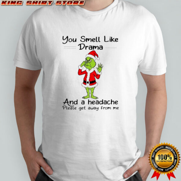 Grinch Santa Claus you smell like and a headache please get away from me Christmas shirt, hoodie, sweater, longsleeve and ladies t-shirt