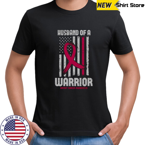 Husband Of A Warrior American Flag Breast Cancer Awareness T-Shirt, hoodie, sweater, longsleeve and ladies t-shirt
