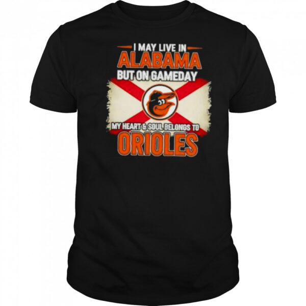 I May Live In Alabama But On Gameday My Heart Soul Belongs To Baltimore Orioles T shirt, hoodie, sweater, longsleeve and ladies t-shirt