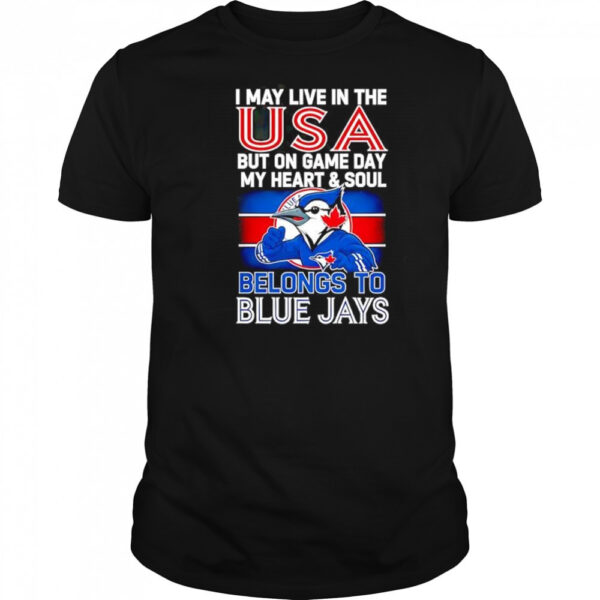 I may live in USA but on game day my heart and soul belongs to the Toronto Blue Jays shirt, hoodie, sweater, longsleeve and ladies t-shirt