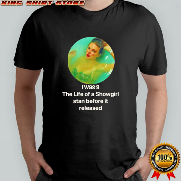 Are you ready to show off your love for the iconic I was a The Life of a Showgirl stan before it released Taylor photo shirt? Dive into nostalgia and celebrate the timeless charm of this exclusive shirt that pays homage to a legendary era. Crafted with premium quality materials, this shirt boasts a vibrant print that captures the essence of a true Showgirl fan. The detailed design showcases Taylor in all her glory, bringing back memories of a bygone era that still resonates with fans today. Slip into this shirt and embark on a journey through time, where every glance in the mirror evokes a sense of pride and passion for the Showgirl legacy.