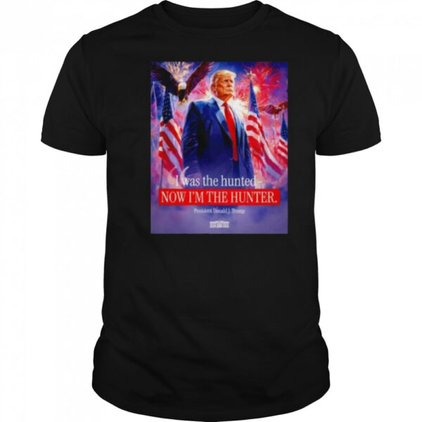 I was the hunted now I’m the hunter president Donald J. Trump shirt, hoodie, sweater, longsleeve and ladies t-shirt