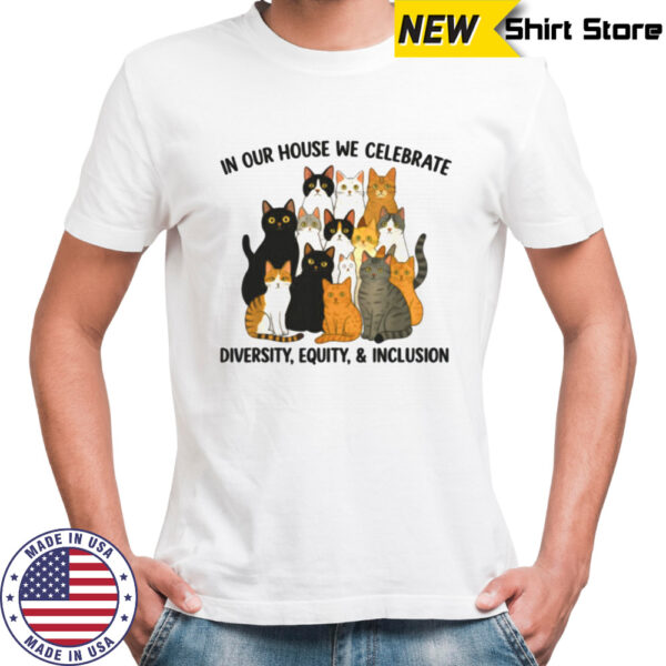 In Our House We Celebrate Diversity Equity & Inclusion Cats Shirt, hoodie, sweater, longsleeve and ladies t-shirt
