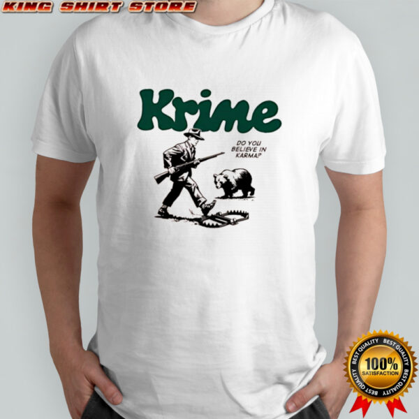 Krime do you believe in Karma man and bear graphic shirt, hoodie, sweater, longsleeve and ladies t-shirt