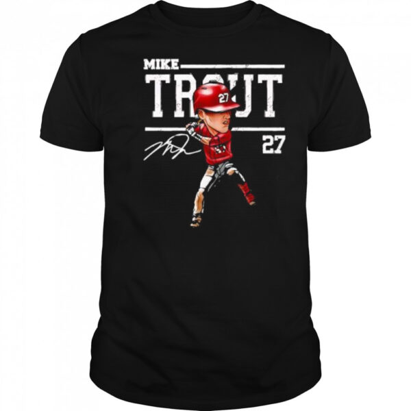 Elevate your fan gear collection with the iconic Mike Trout Cartoon number 27 shirt today! Stand out from the crowd and let your passion for baseball shine through. Whether you’re a die-hard Angels fan or simply appreciate top-notch design, this shirt is perfect for you. Donning this unique piece not only shows your support for one of the greatest players in the game but also lets you express your individual style effortlessly. Don’t miss out on the opportunity to own this exclusive shirt – grab yours now and step up your fashion game while celebrating the sportsmanship and talent of Mike Trout!