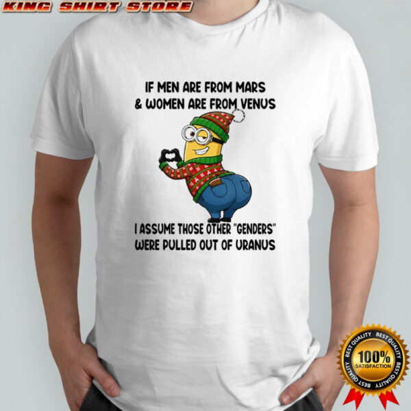 In a world where humor meets creativity, the Minion i assume those other Genders were pulled out of uranus shirt stands out as a beacon of wit and charm. Imagine the laughter this shirt can spark, the camaraderie it can create among those who appreciate a good joke. Crafted with soft, breathable fabric, this shirt not only delivers a bold statement but also ensures comfort all day long. Perfect for casual outings with friends or lazy weekends at home, it adds a touch of playful irreverence to your wardrobe. Let your fashion sense reflect your fun-loving personality with this one-of-a-kind piece.