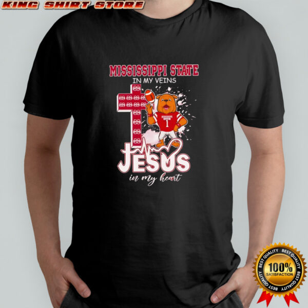 Mississippi State Bulldogs in my veins Jesus in my heart bulldog mascot number 1 shirt, hoodie, sweater, longsleeve and ladies t-shirt