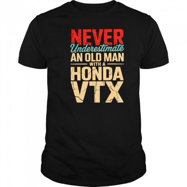 Never underestimate an old man with a Honda VTX shirt, hoodie, sweater, longsleeve and ladies t-shirt