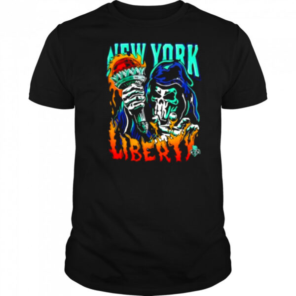 Get ready to stand out with the **New York Liberty Torch player skeleton shirt** – a bold and fearless statement piece that embodies the spirit of the game. Crafted for true basketball enthusiasts, this shirt seamlessly blends style and passion. The intricate design features a unique fusion of the iconic New York Liberty Torch and a basketball player silhouette, creating an eye-catching and powerful visual representation. Made from high-quality, breathable fabric, this shirt ensures comfort while you cheer for your favorite team or hit the court yourself.