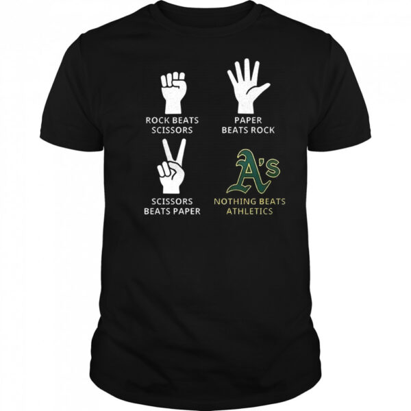 Oakland Athletics rock beats scissors paper beats rock scissors beats paper nothing beats Athletics shirt, hoodie, sweater, longsleeve and ladies t-shirt