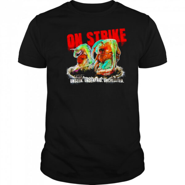 Every stitch in the On strike unseen underpaid uncredited shirt tells a story of perseverance and passion. It serves as a reminder to acknowledge and appreciate the efforts of those who often go unnoticed. By wearing this shirt, you become a voice for the voiceless, a beacon of support for those who deserve more recognition. Let this garment be a statement of solidarity with the unseen heroes around us. Join the movement, stand in solidarity, and proudly wear this shirt to raise awareness and honor the invaluable contributions of those who toil in the shadows. Embrace the spirit of recognition and respect – order your On strike unseen underpaid uncredited shirt today and wear your support with pride!