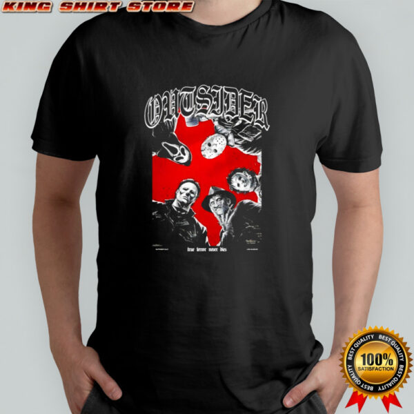 Embrace your inner rebel and unleash your love for horror with the Outsider cult Ghostface x Jason Voorhees and Michael Myers x Freddy Krueger shirt! Elevate your wardrobe with this statement piece that embodies the perfect blend of fear and fashion. Whether you’re a die-hard horror aficionado or simply appreciate the artistry behind the macabre, this shirt is a bold nod to the legends that haunt our dreams. Make a statement, start conversations, and showcase your unique style with this one-of-a-kind shirt that merges the worlds of horror and couture effortlessly. Join the cult of outsiders who dare to defy conventions and celebrate the chilling allure of Ghostface, Jason Voorhees, Michael Myers, and Freddy Krueger. Step into the darkness and let your wardrobe reflect your fearless spirit!