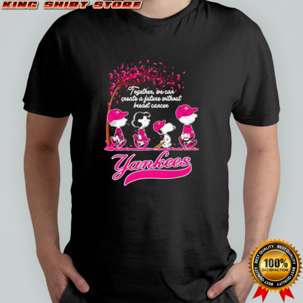Peanuts together we can create a future without Breast Cancer New York Yankees shirt, hoodie, sweater, longsleeve and ladies t-shirt