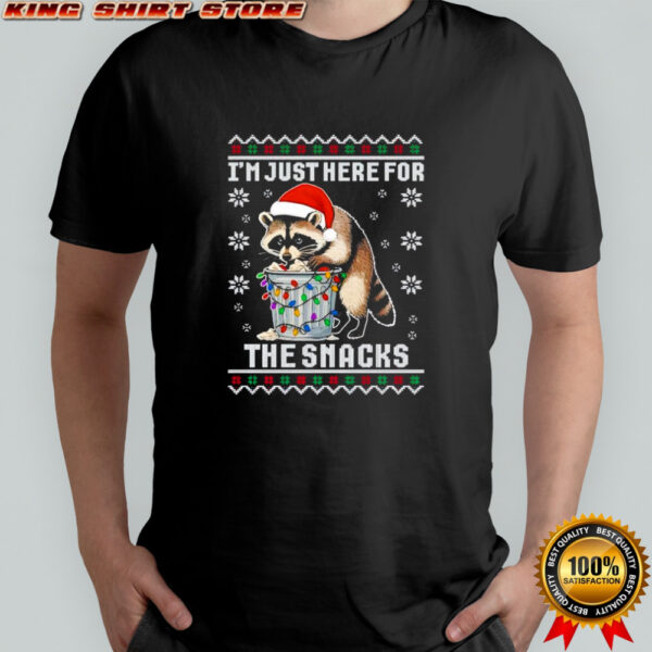 Raccoon Christmas i’m just here for the snacks shirt, hoodie, sweater, longsleeve and ladies t-shirt