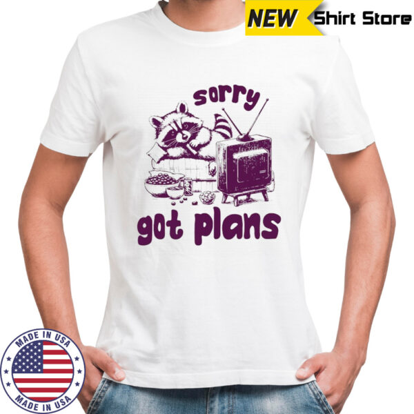 Raccoon watch TV sorry got plans shirt, hoodie, sweater, longsleeve and ladies t-shirt
