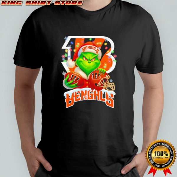 Santa Christmas Grinch Cincinnati Bengals holding helmet football shirt, hoodie, sweater, longsleeve and ladies t-shirt