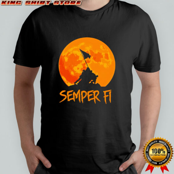Semper Fi Flag on a Hill and Full Moon Graphic shirt, hoodie, sweater, longsleeve and ladies t-shirt