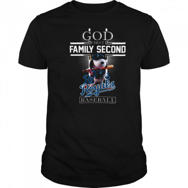 Snoopy God First Family Second Then Kansas City Royals Baseball T Shirt, hoodie, sweater, longsleeve and ladies t-shirt