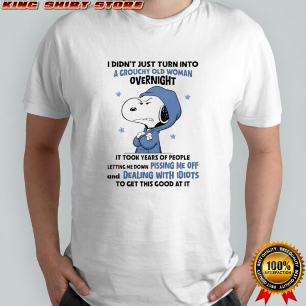 Are you tired of dealing with the daily frustrations that life throws your way? Imagine expressing your exasperation in a humorous yet relatable way with our **Snoopy grouchy old woman letting me down pissing me off dealing with idiots shirt**. This shirt speaks volumes without saying a word. The vibrant graphic of Snoopy effortlessly captures the essence of annoyance and disappointment that we all feel from time to time. Whether you’re stuck in traffic, dealing with a difficult coworker, or simply having a bad day, this shirt is your perfect companion.