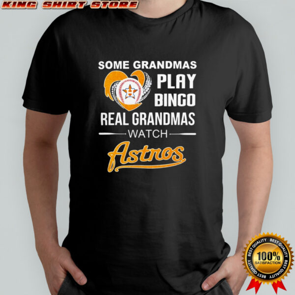 But this shirt is more than just fabric and ink; it’s a portal to a world of shared passion and excitement. When your grandma wears her Some grandmas play bingo real grandmas watch Houston Astros shirt, she’s not just watching a game—she’s immersing herself in a community of like-minded fans, celebrating victories and consoling each other in defeats. It’s a reminder that no matter the distance or time that separates you, the love for the Houston Astros unites you in spirit. So, why not join the ranks of real grandmas and experience the thrill of supporting your team alongside your loved ones? Embrace the legacy, create new memories, and wear your pride on your sleeve with this iconic shirt. Get yours today and become a part of a tradition that transcends generations.