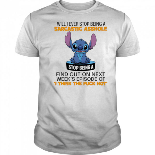 But wait, there’s more! This Stitch will I ever stop being a sarcastic asshole shirt isn’t just about looks; it’s about attitude. Let your inner sarcasm shine through with every wear, whether you’re out with friends or simply lounging at home. Embrace your quirky side and show the world that being a bit of a smart aleck is all part of your charm. So why wait? Elevate your wardrobe with this shirt today and let your sarcastic sense of humor take center stage! Stand out from the crowd and let your shirt do the talking for you.