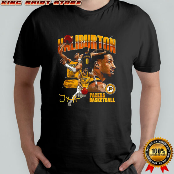 Step into the limelight and let your fandom shine with the Tyrese Haliburton Indiana Pacers basketball player collage signature shirt. Not only does this shirt celebrate the rising star that is Tyrese Haliburton, but it also offers unparalleled comfort and style. Crafted from high-quality materials, this shirt ensures a soft touch against your skin while keeping you effortlessly cool throughout the day. Whether you’re attending a game or simply hanging out with friends, this shirt is a conversation starter and a statement piece rolled into one. Don’t miss out on the opportunity to own a piece of Pacers history and showcase your unwavering support. Elevate your fan gear collection today with this exclusive shirt!