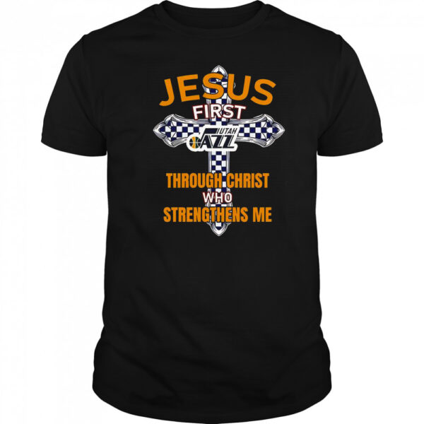 Utah Jazz Jesus First Through Christ Who Strengthens Me T-Shirt, hoodie, sweater, longsleeve and ladies t-shirt