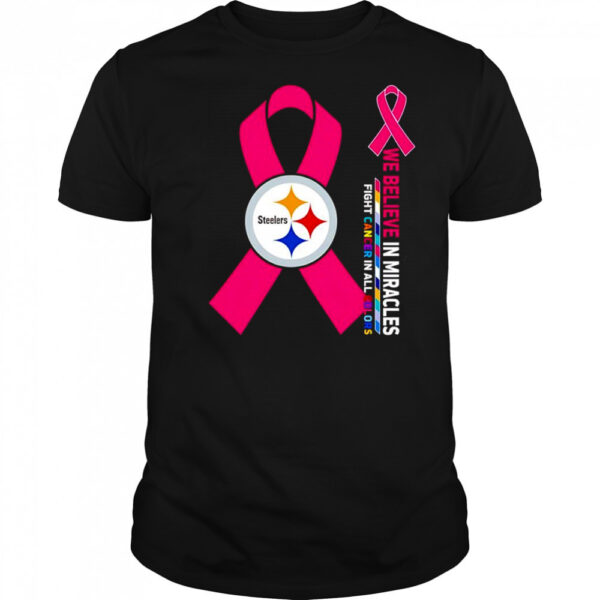 We believe in miracles fight cancer in all colors Pittsburgh Steelers shirt