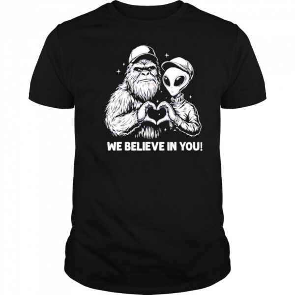 We Believe in You Bigfoot and Alien heart shirt, hoodie, sweater, longsleeve and ladies t-shirt